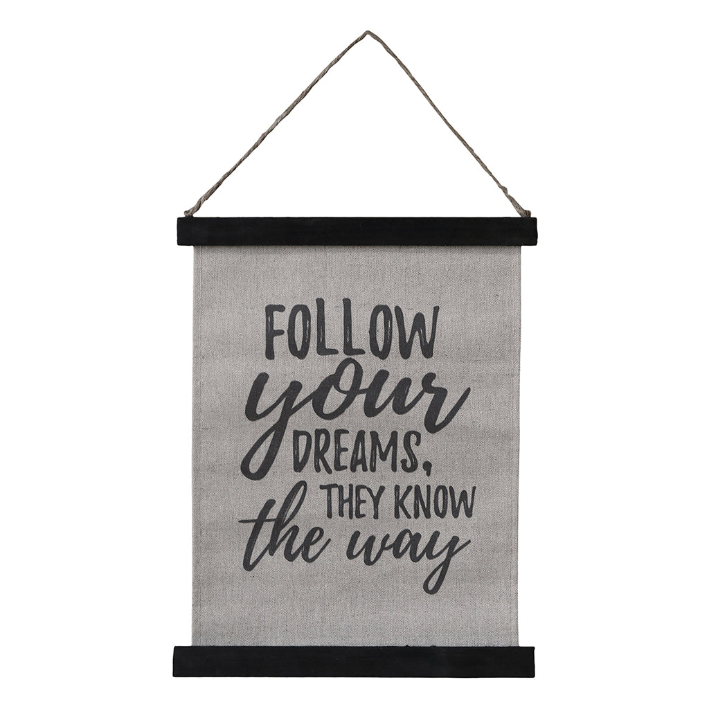 Mysigt canvashänge med texten "Follow your dreams, they know the way".