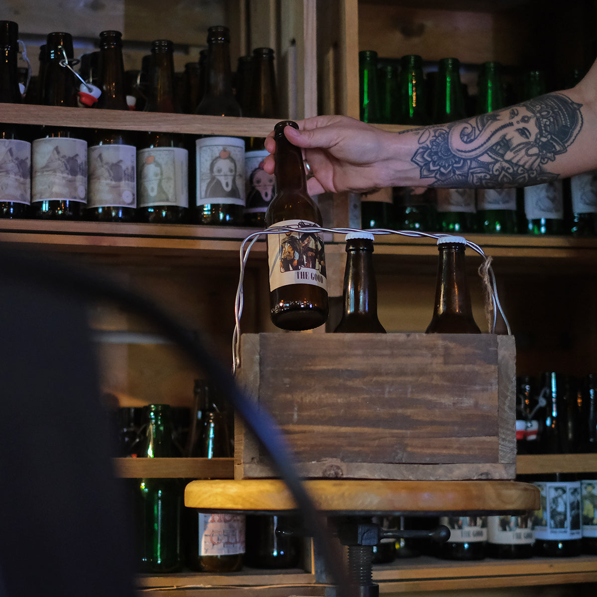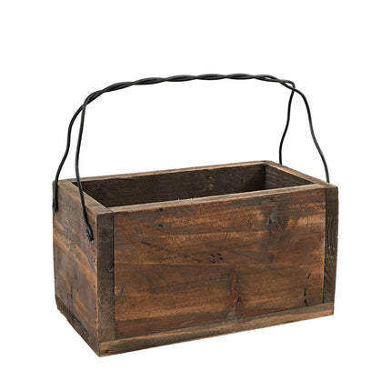 Tuffa rustika trälådor med handtag av tvinnade metallvajrar.