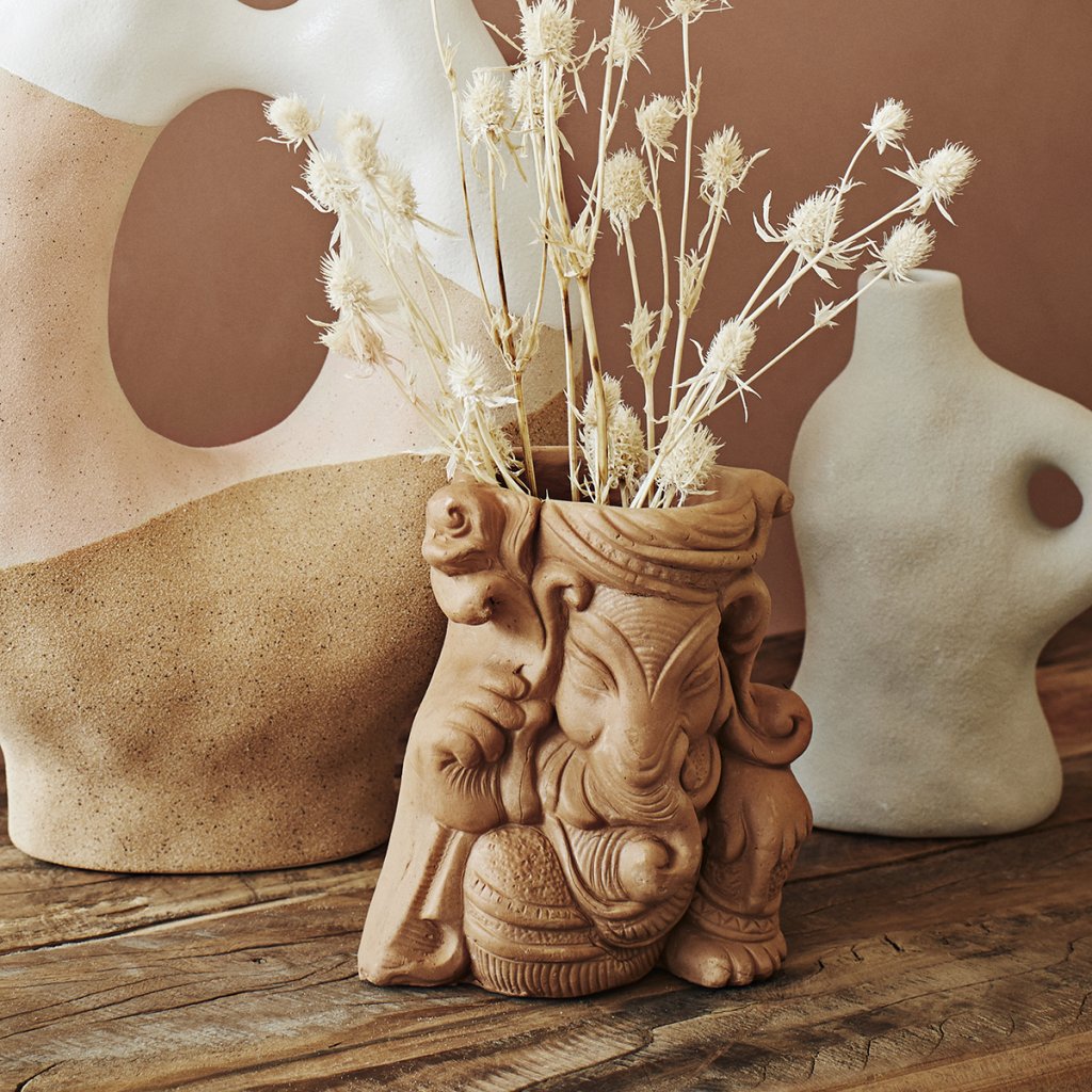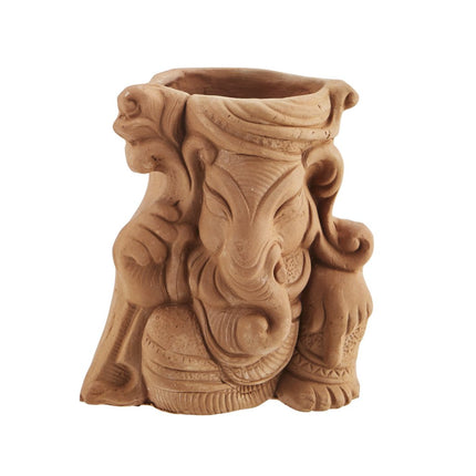 Superfin liten vas i lergods föreställande den hinduiska guden Ganesha. Underbara detaljer!