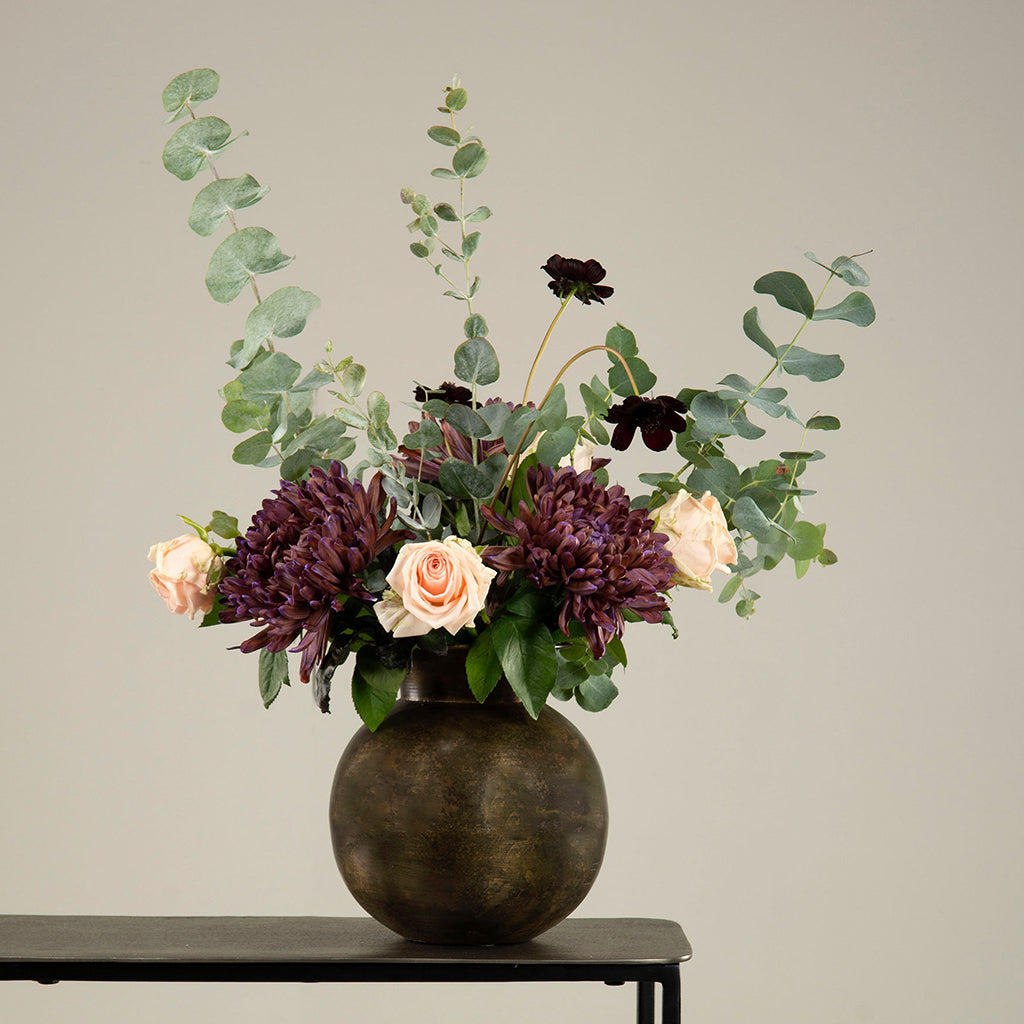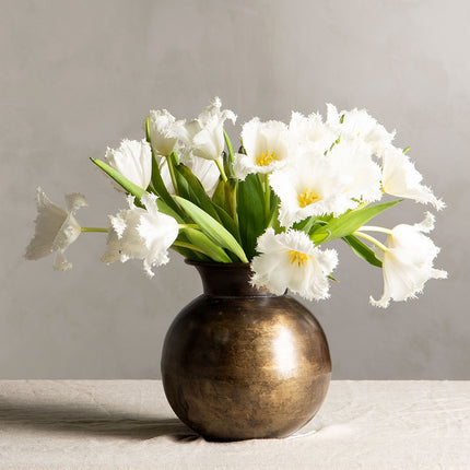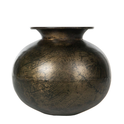 Upptäck vår runda, vackert patinerade metallvas, inspirerad av den traditionella indiska matkan".