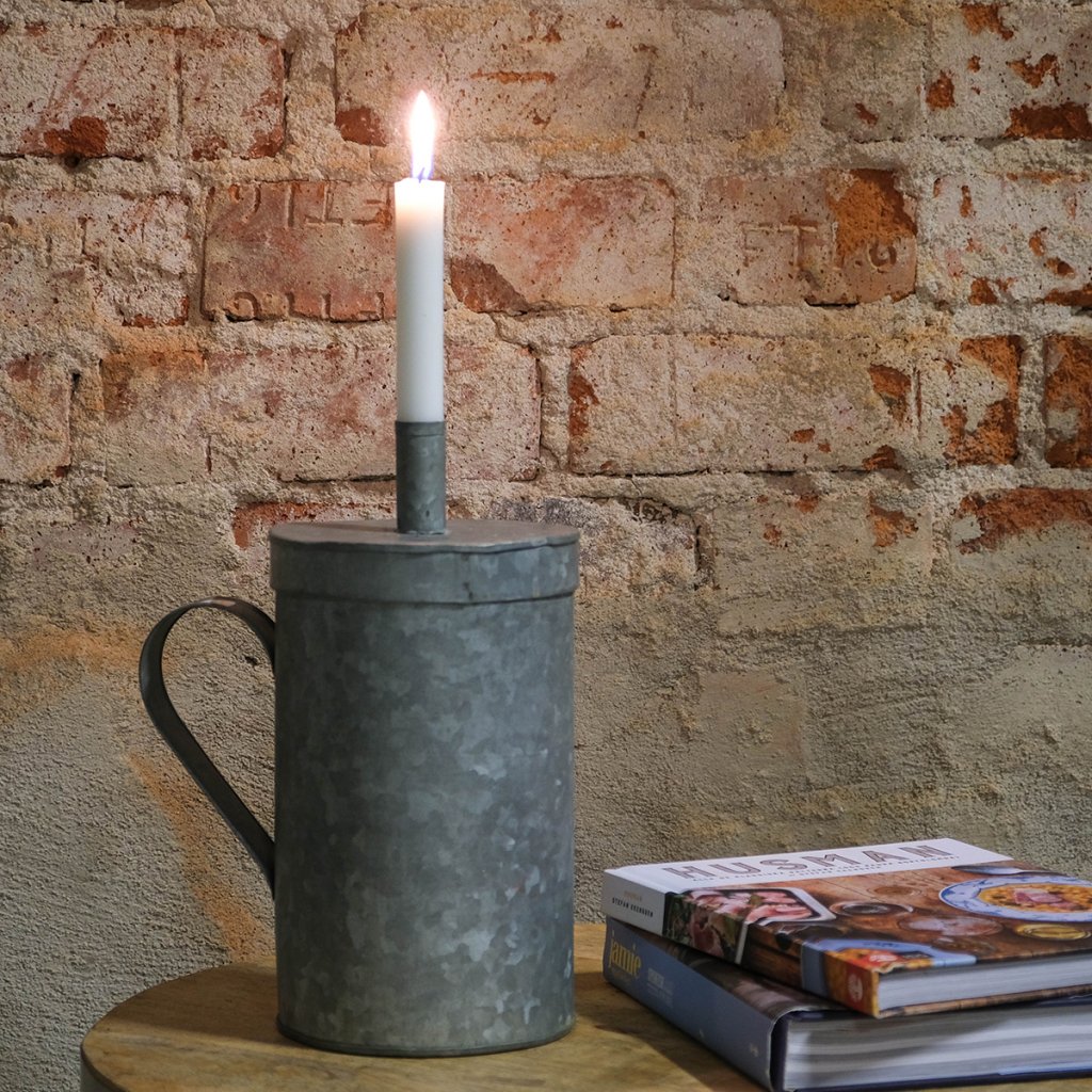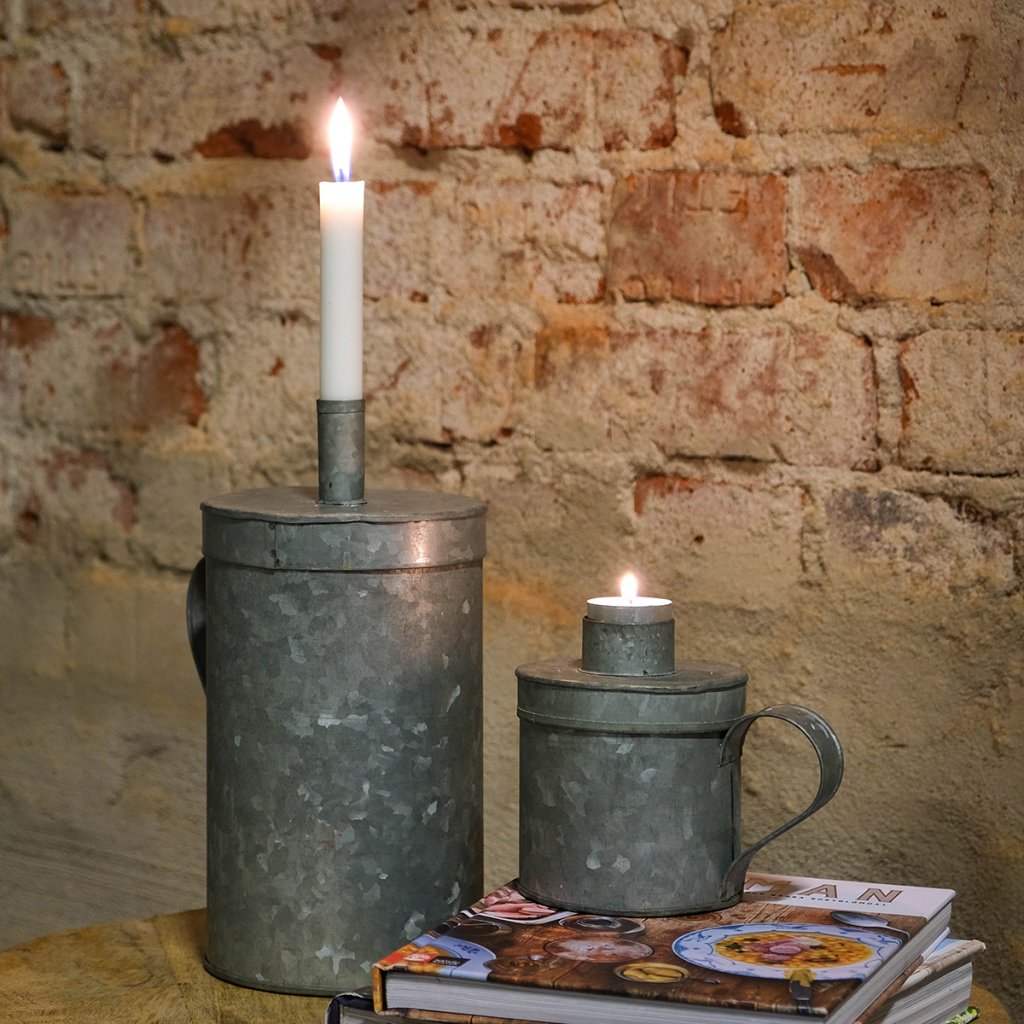 Zinkburk för förvaring av stearinljus. Perfekt under det mörka halvåret!